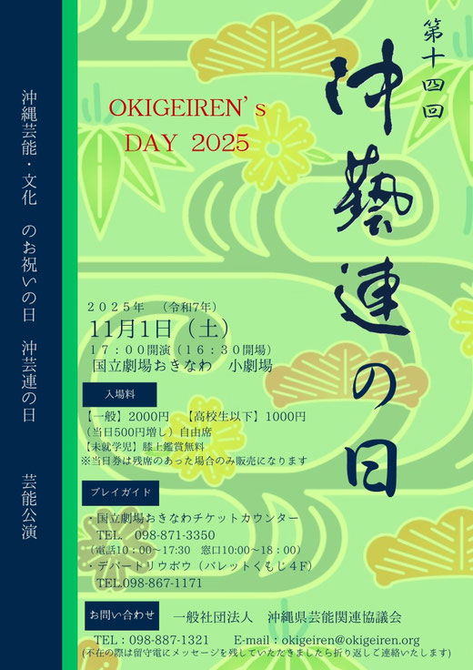 今年もおこないます!「沖芸連の日」芸能公演。